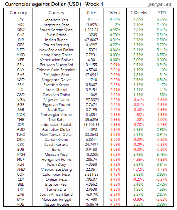 Divisas frente USD: Semana 4
