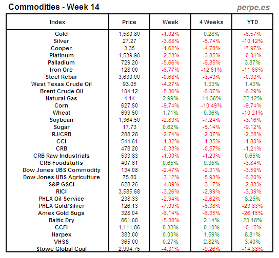 Index Commodity Week 14 2013