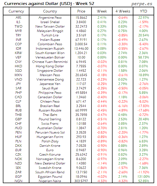 Divisas frente USD: Semana 52