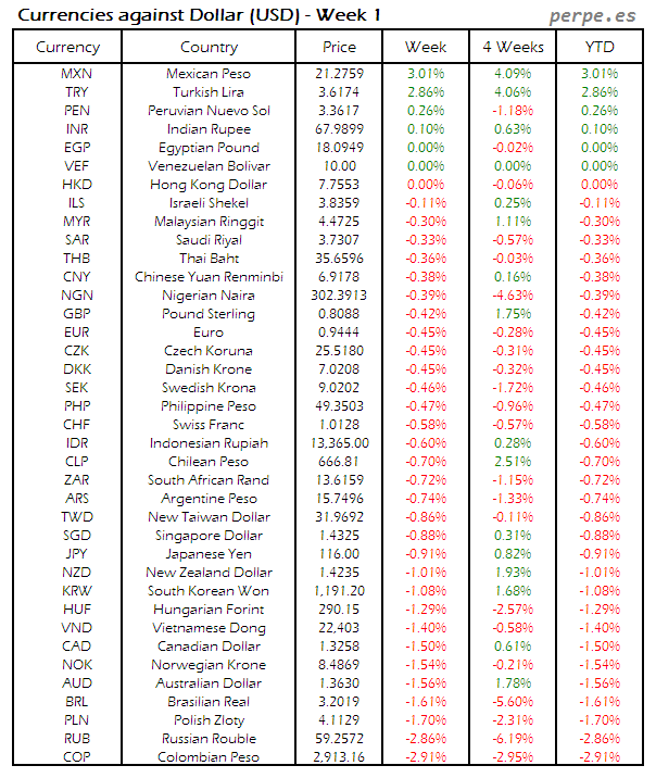 Divisas frente USD: Semana 1