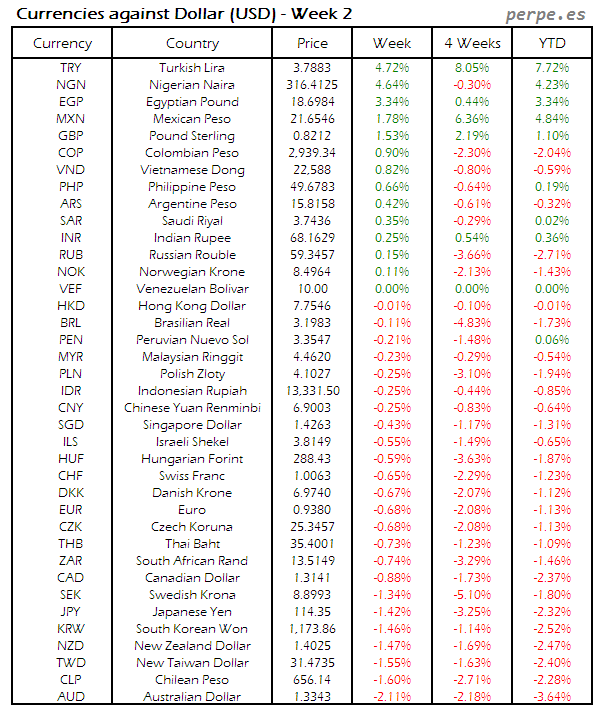Divisas frente USD: Semana 2