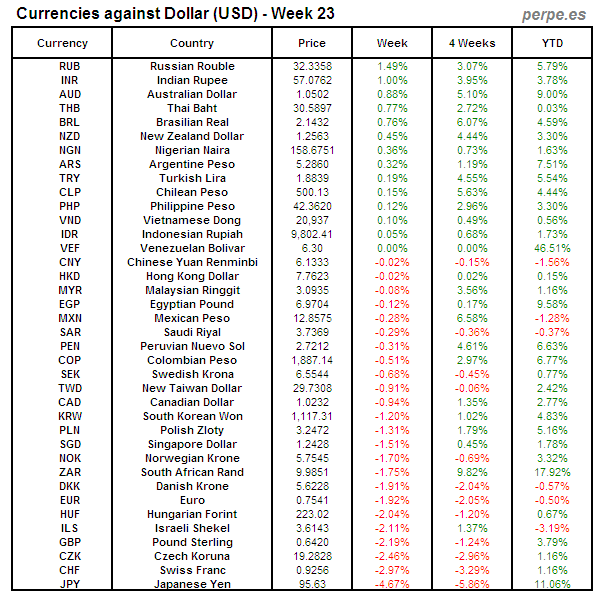 Divisas frente USD: Semana 23