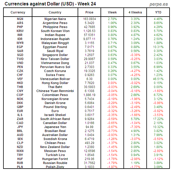 Divisas frente USD: Semana 24