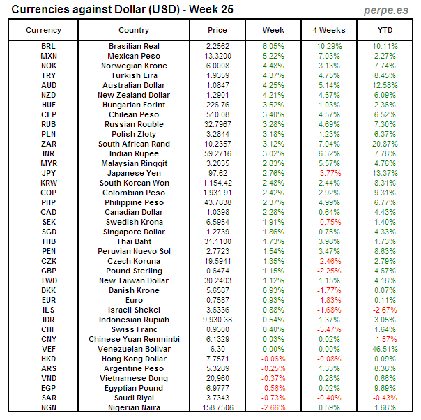 Divisas frente USD: Semana 25