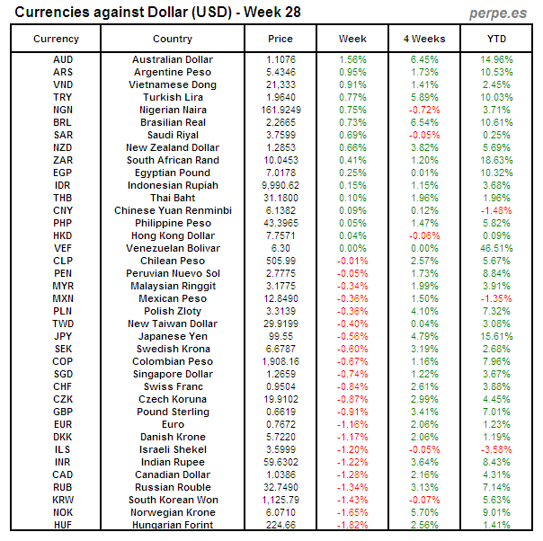 Divisas frente USD: Semana 28