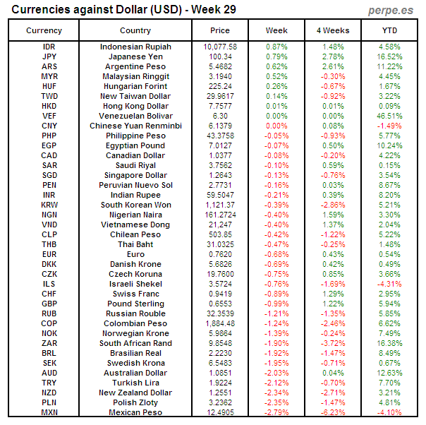 Divisas frente USD: Semana 29