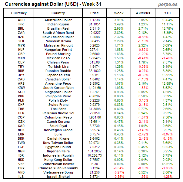 Divisas frente USD: Semana 31
