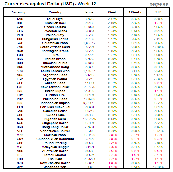 Divisas frente USD: Semana 12