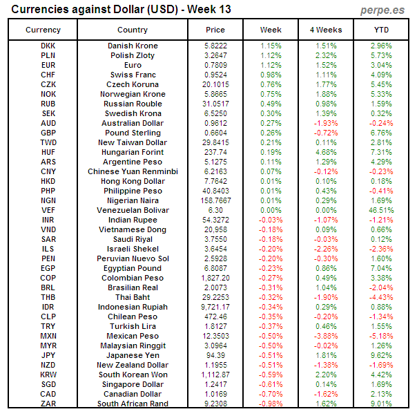 Divisas frente USD: Semana 13