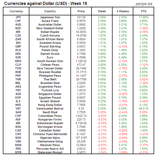 Divisas frente USD: Semana 19