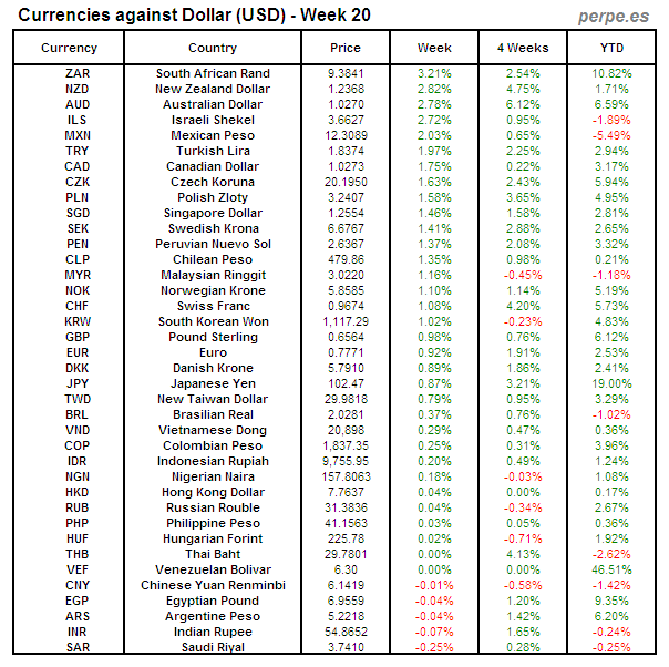 Divisas frente USD: Semana 20