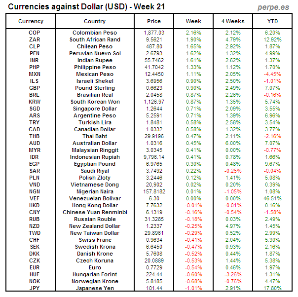 Divisas frente USD: Semana 21