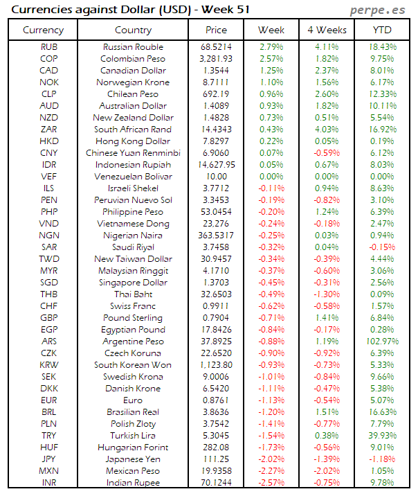 Divisas frente USD: Semana 51