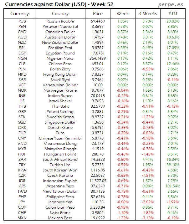 Divisas frente USD: Semana 52
