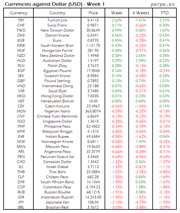 Divisas frente USD: Semana 1