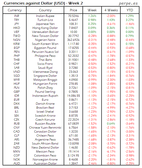 Divisas frente USD: Semana 2