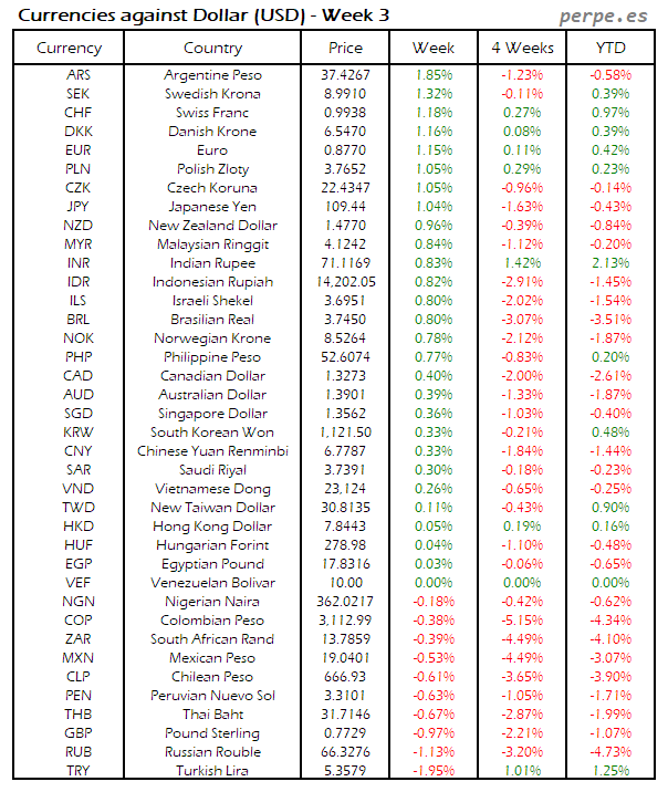 Divisas frente USD: Semana 3