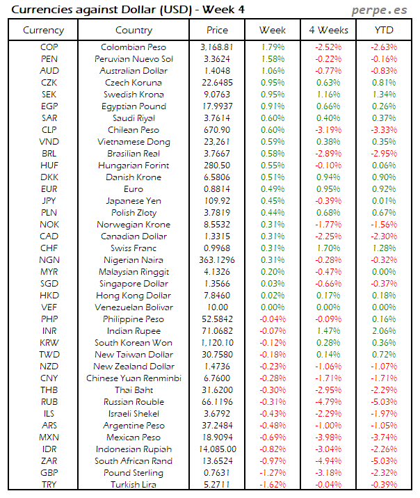 Divisas frente USD: Semana 4