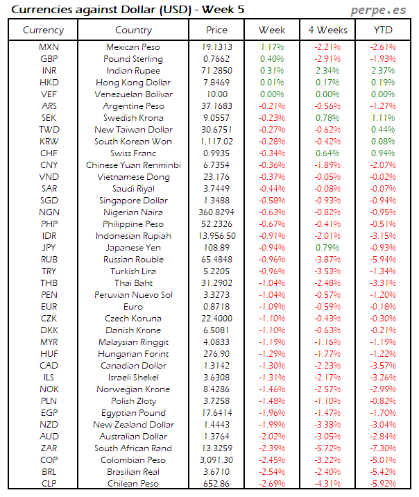 Divisas frente USD: Semana 5