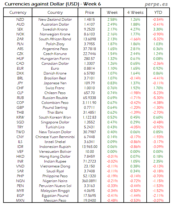 Divisas frente USD: Semana 6