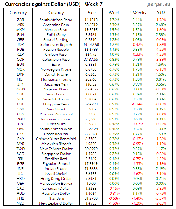 Divisas frente USD: Semana 7