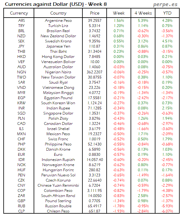 Divisas frente USD: Semana 8