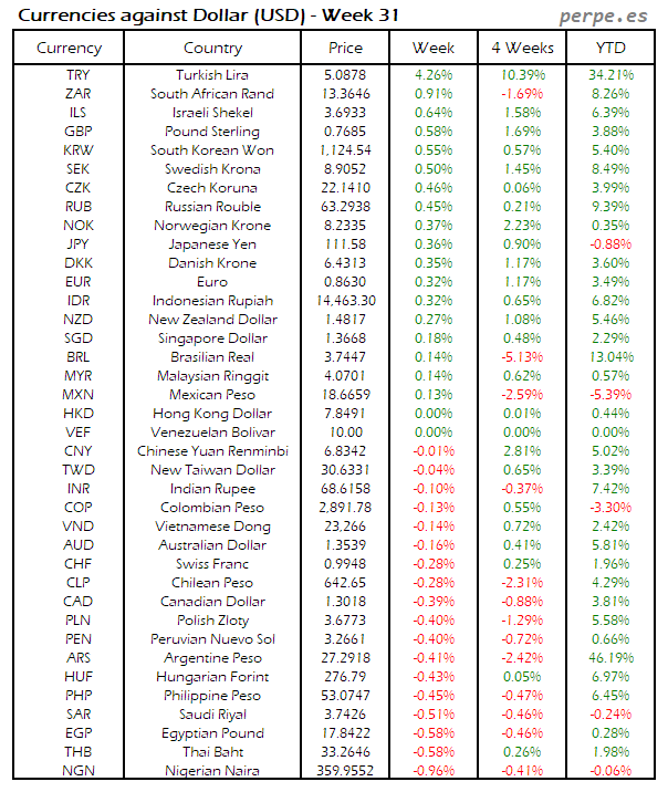 Divisas frente USD: Semana 31