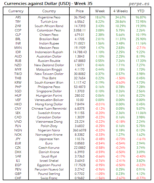 Divisas frente USD: Semana 35
