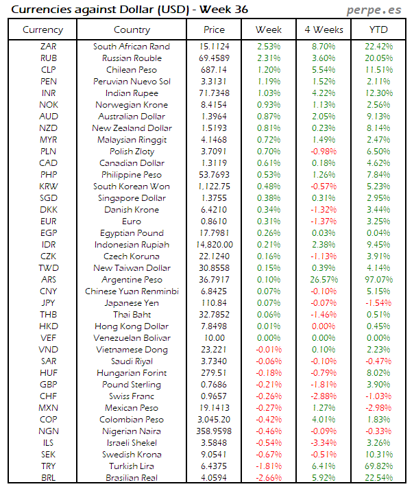 Divisas frente USD: Semana 36