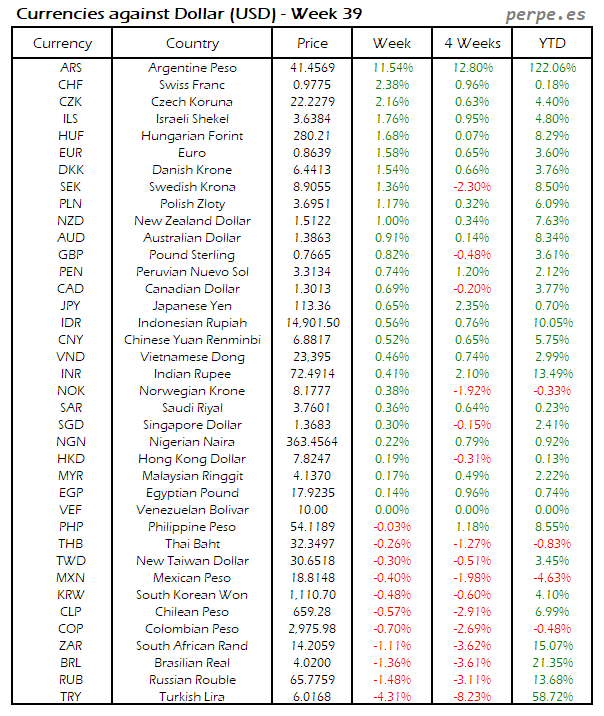 Divisas frente USD: Semana 39