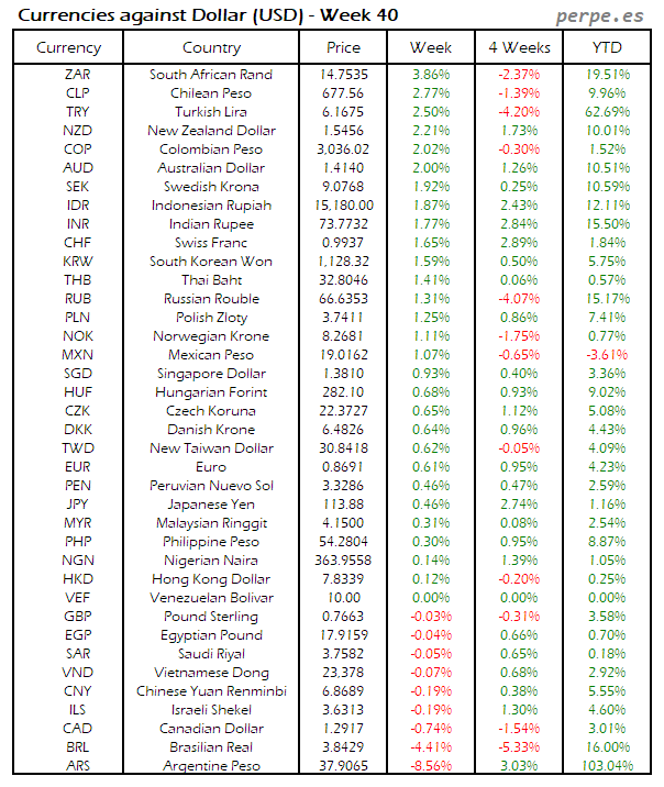 Divisas frente USD: Semana 40