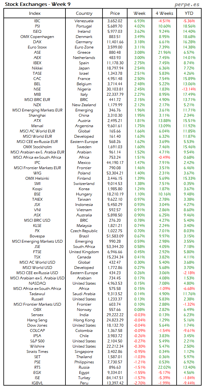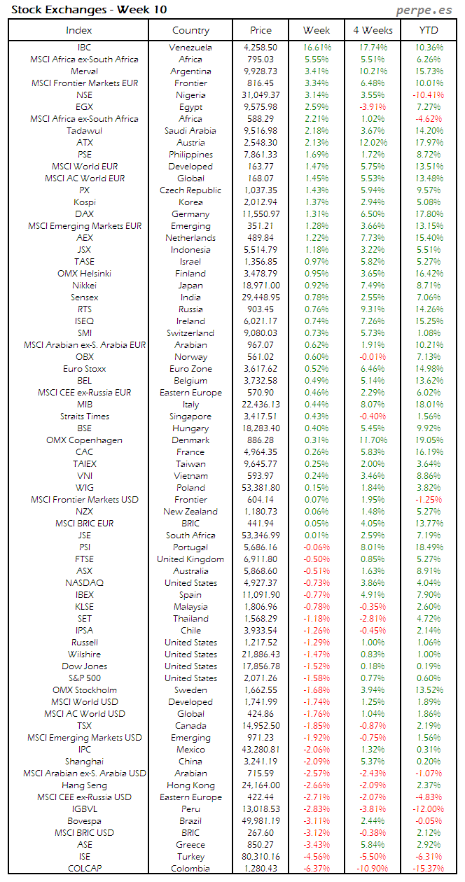 Bolsas Mundiales: Semana 10