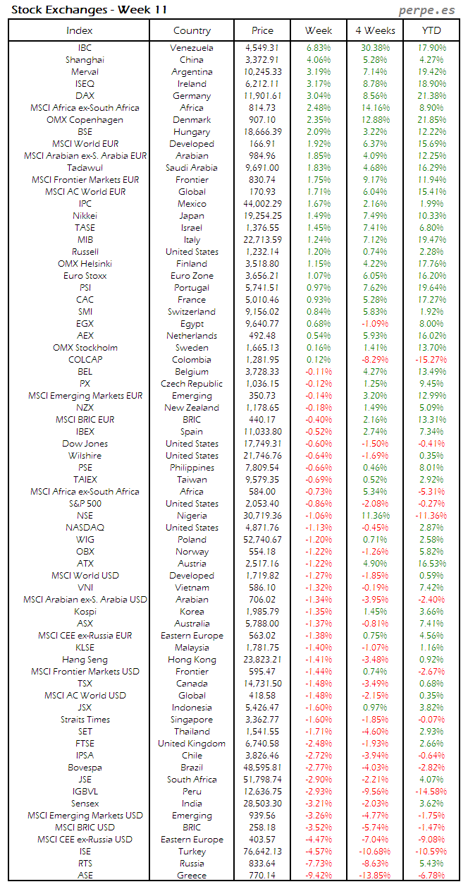 Bolsas Mundiales: Semana 11