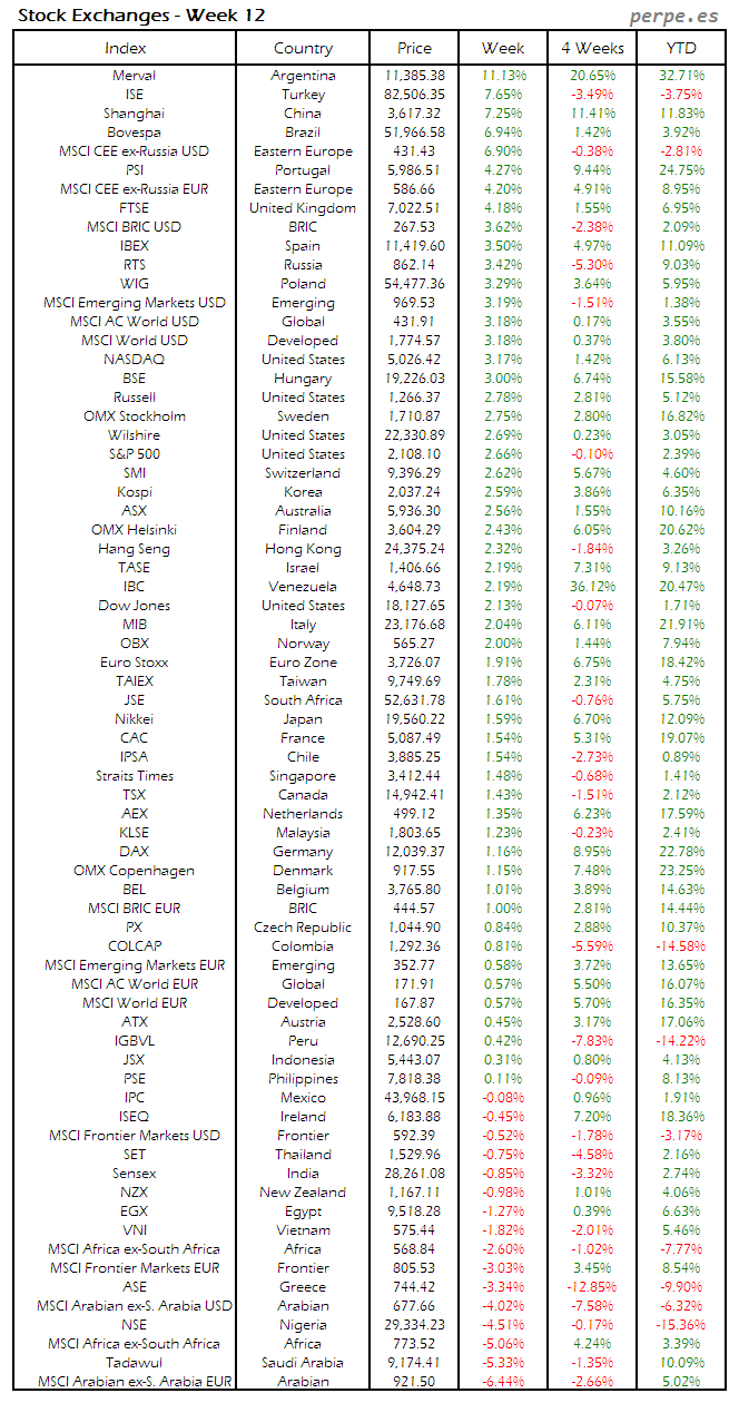 Bolsas Mundiales: Semana 12