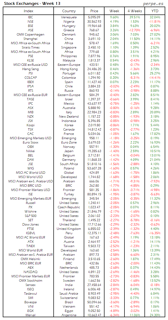 Bolsas Mundiales: Semana 13