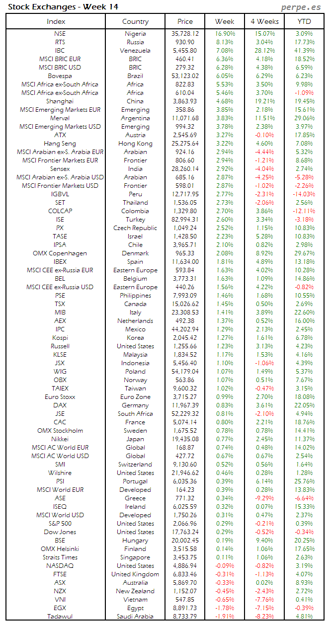Bolsas Mundiales: Semana 14