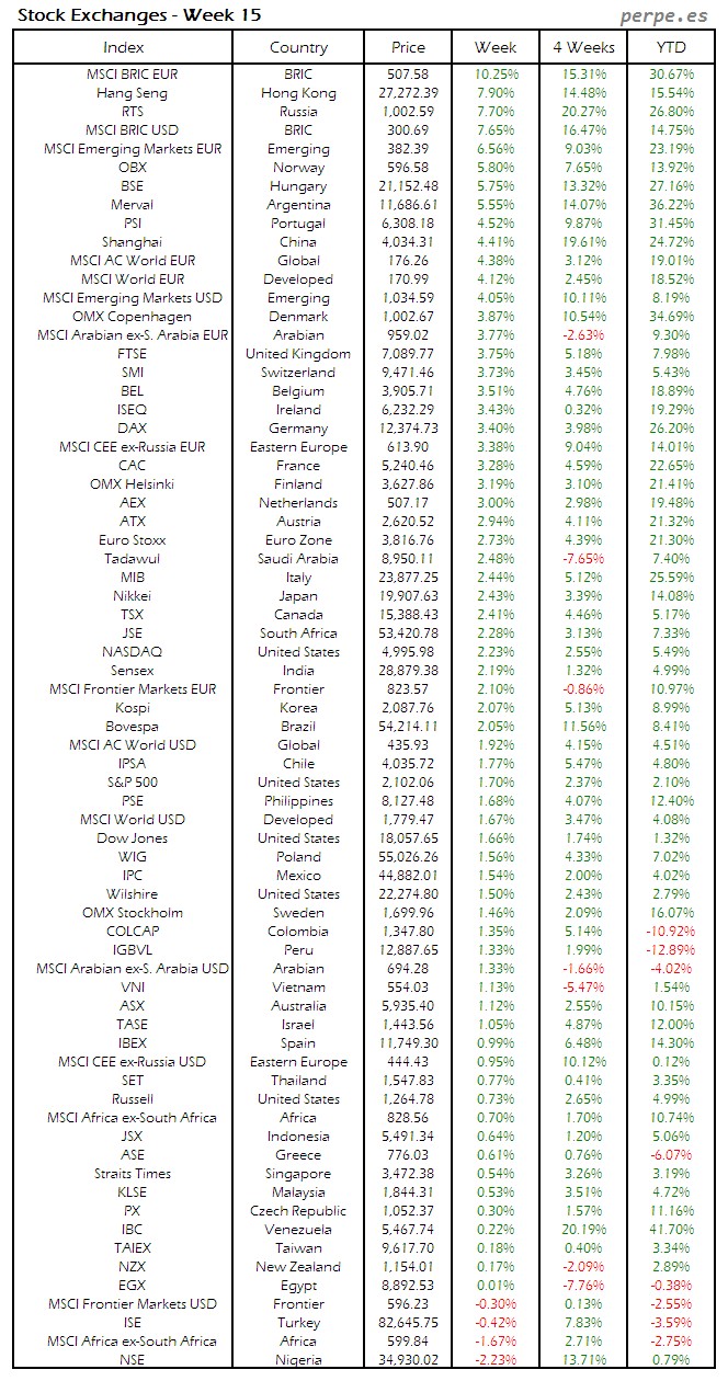 Bolsas Mundiales: Semana 15