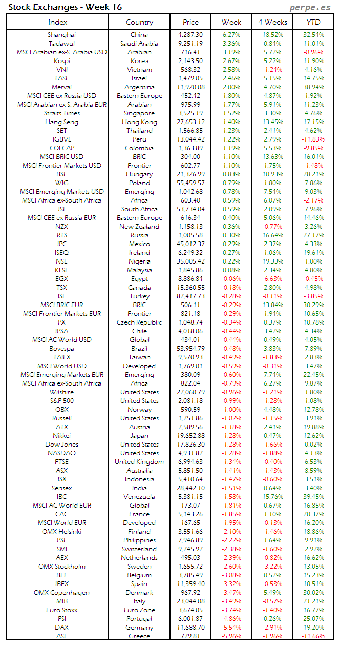 Bolsas Mundiales: Semana 16