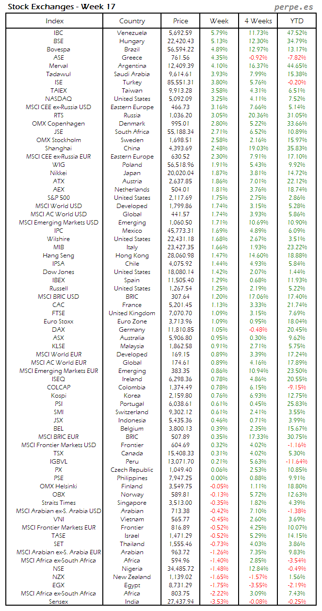 Bolsas Mundiales: Semana 17