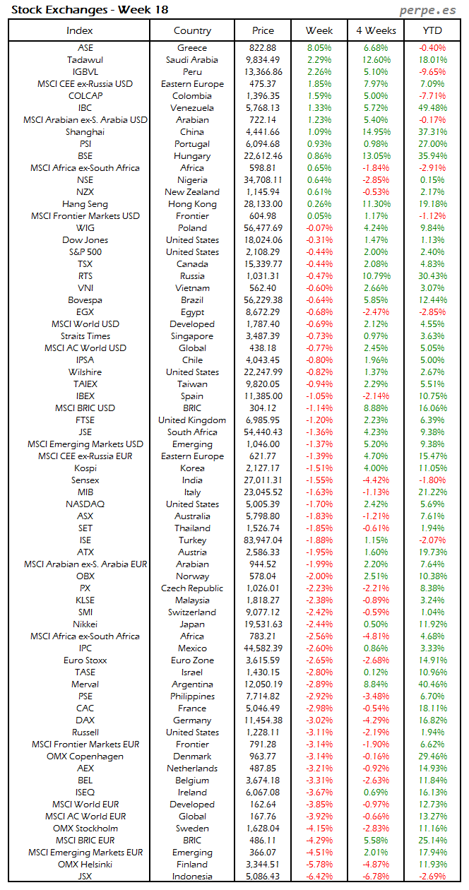 Bolsas Mundiales: Semana 18