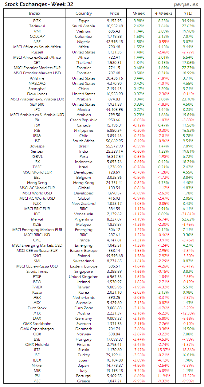 Bolsas Mundiales: Semana 32