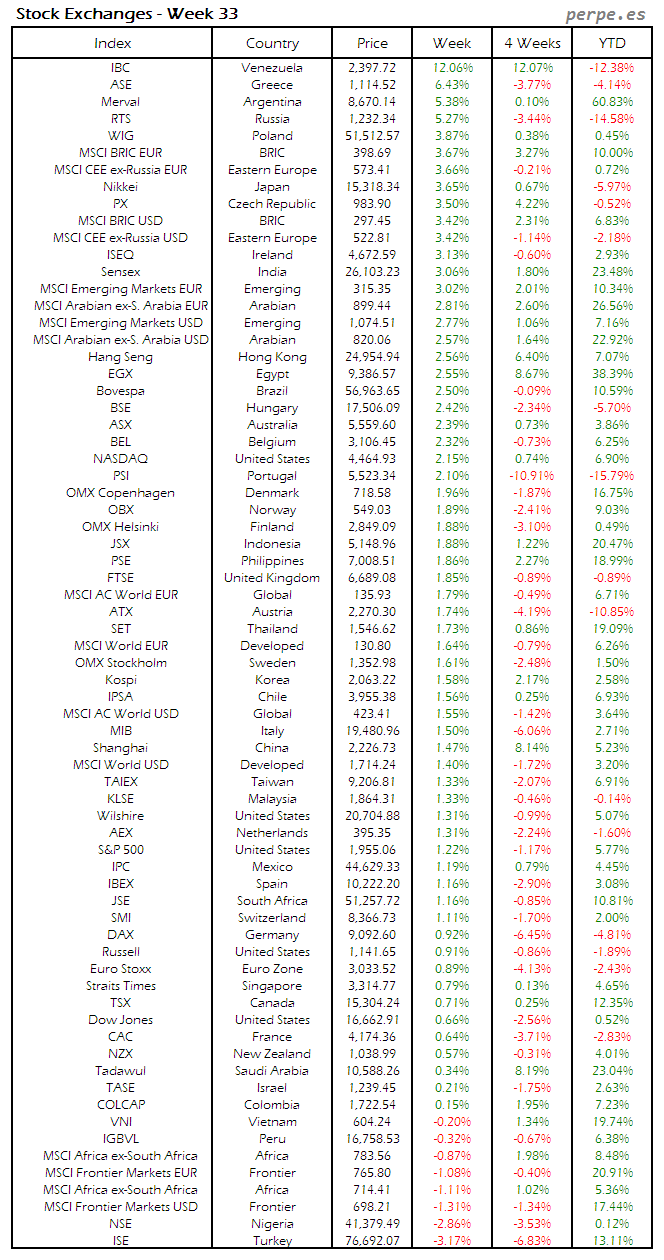 Bolsas Mundiales: Semana 33