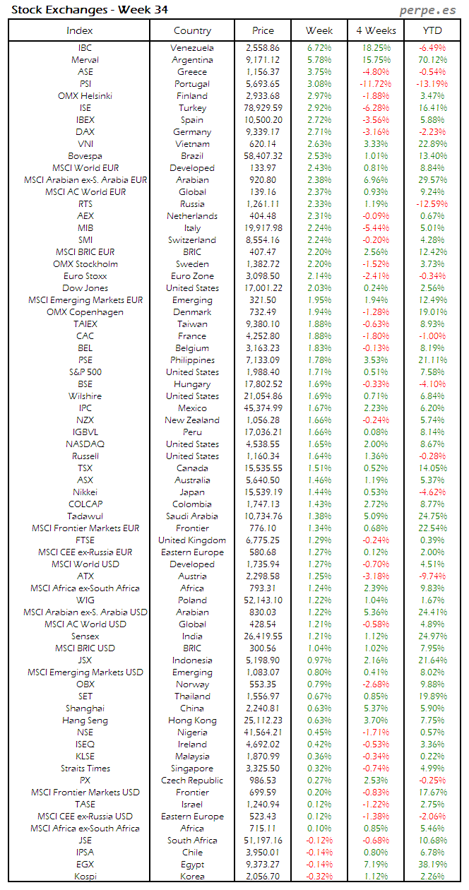 Bolsas Mundiales: Semana 34