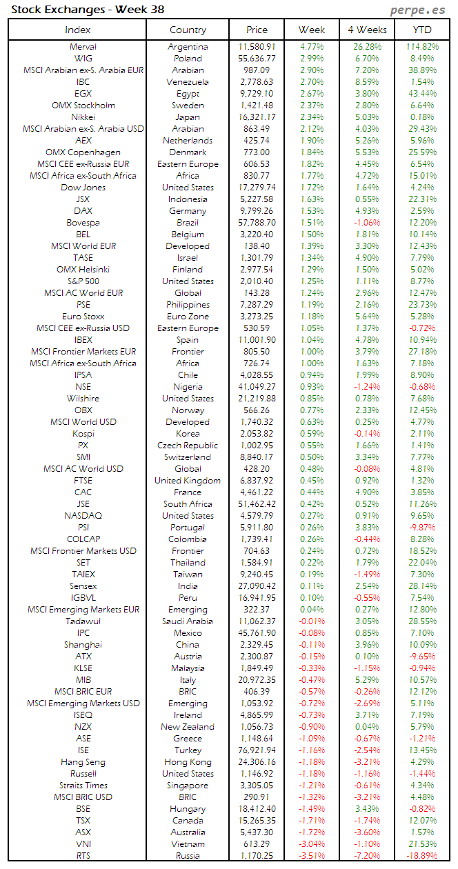 Bolsas Mundiales: Semana 38