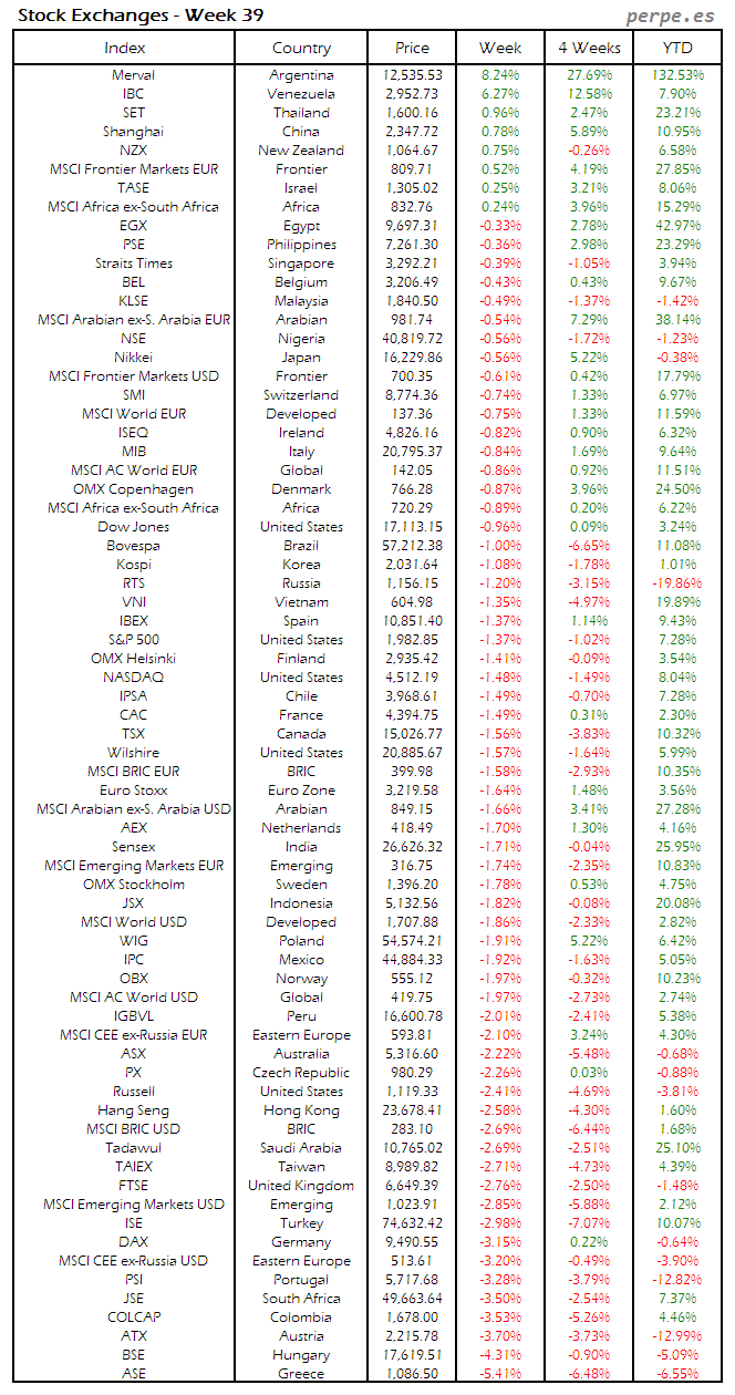 Bolsas Mundiales: Semana 39
