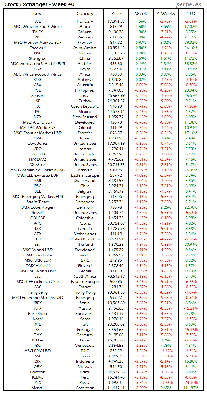 Bolsas Mundiales: Semana 40