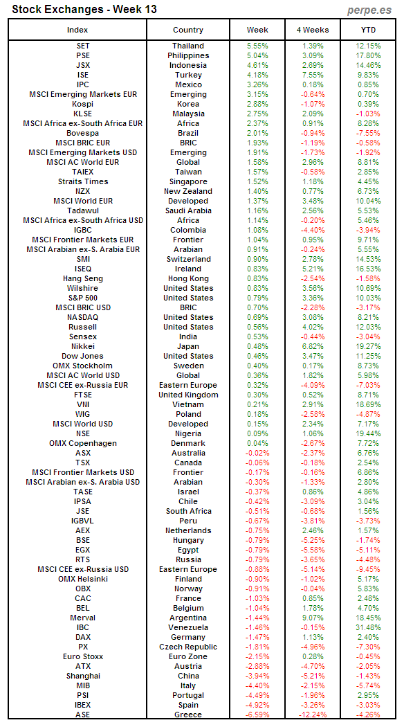 Bolsas Mundiales: Semana 13