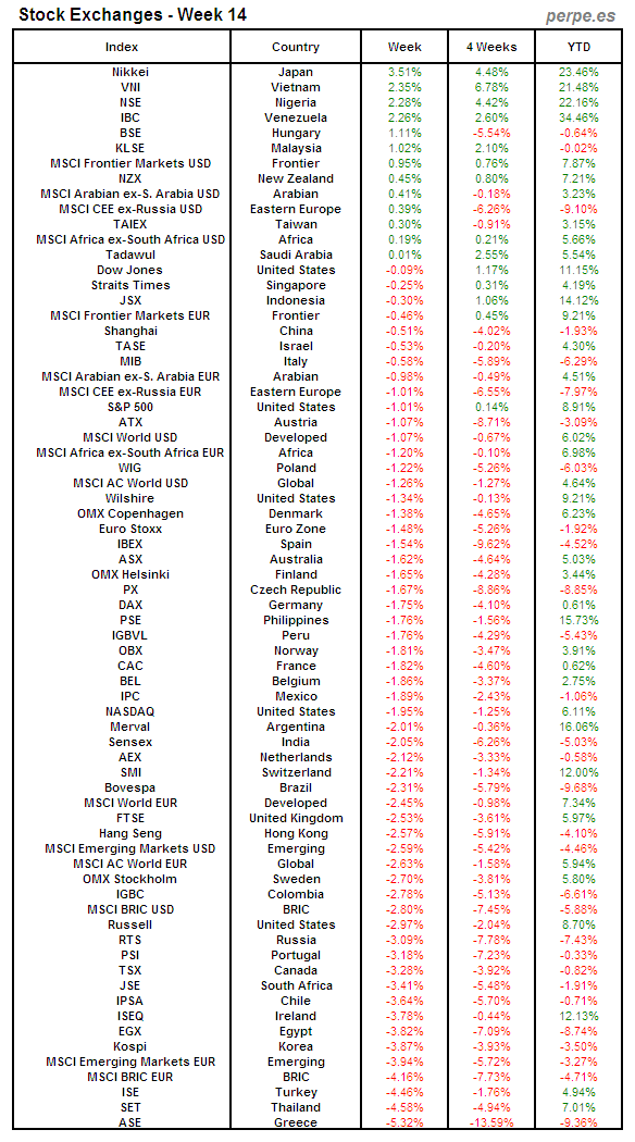 Bolsas Mundiales: Semana 14