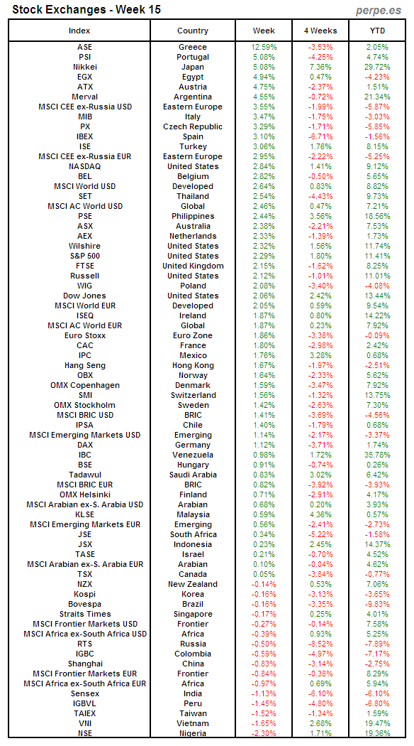 Bolsas Mundiales: Semana 15