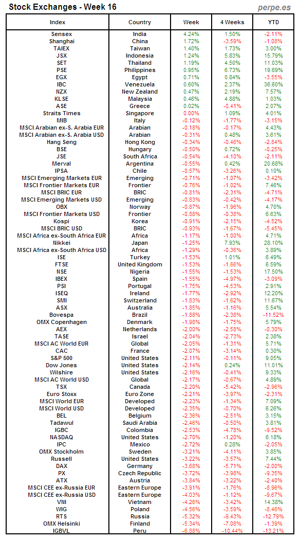 Bolsas Mundiales: Semana 16